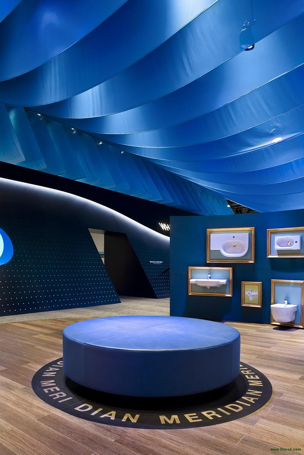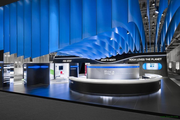 展會由著名設計公司dan pearlman Markenarchitektur GmbH 設計,位于德國法蘭克福。設計理念:藍色配以黑色,鮮明而深遠,冷靜而不失生氣勃勃。通過整體的概念設計展臺全方位展示樂家品牌。